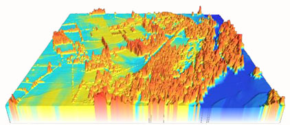 Une autre manière de représenter le relief s’appuie sur le modèle numérique de terrain (MNT). Un MNT est construit à partir de toutes les données topographiques et bathymétriques disponibles et celles collectées en début d’étude (éléments existants ou nouveaux relevés).