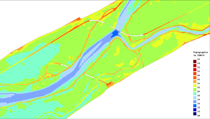 En simulant ces crues avec le modèle, les résultats numériques sont comparés aux mesures effectuées sur le terrains lors des crues réelles. Il est alors possible d’affiner, de caler les différents paramètres hydrauliques de rugosité des lits.