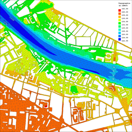 Ce modelé de relief est injecté dans un simulateur qui résout les équations d’hydrodynamique de Barré de Saint-Venant.